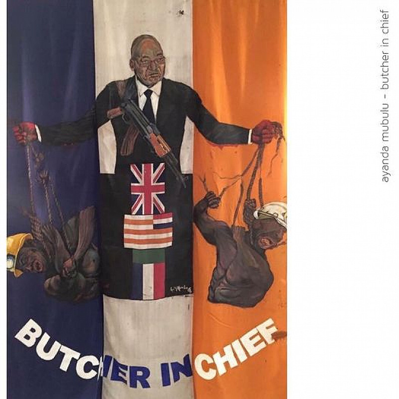 Butcher in Chief. Oil on SA flag