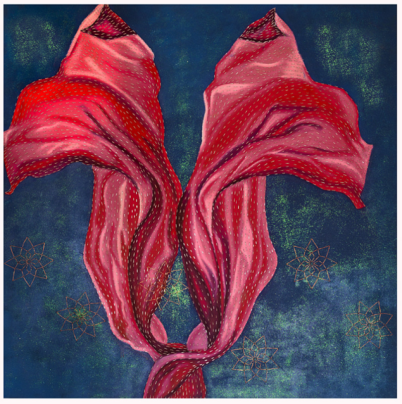 , Olwethu De Vos , Ink, pastel, staples, copper and glitter on wood