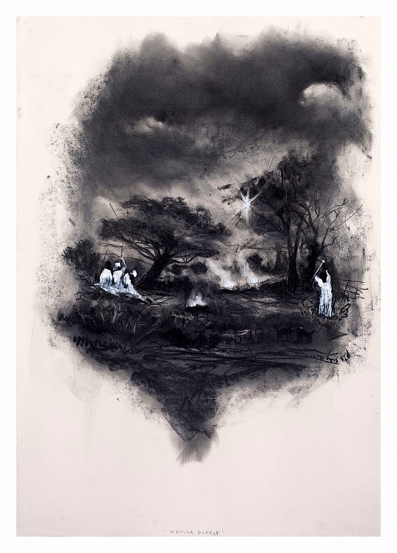 , Themba Khumalo , Charcoal, coffee wash and pastel on paper