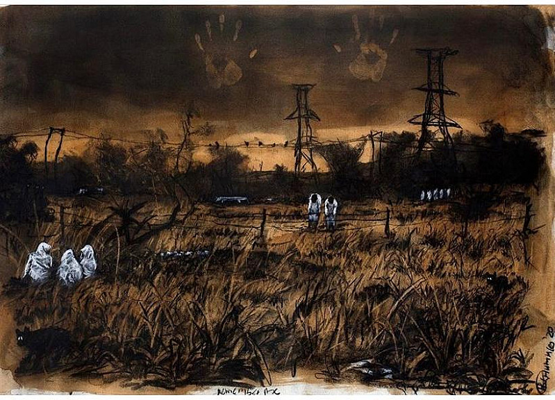, Themba Khumalo , Charcoal, coffee wash and pastel on paper