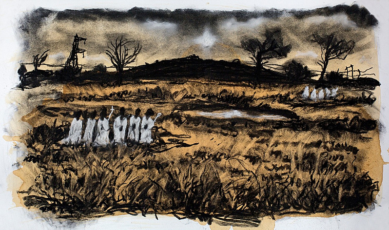 , Themba Khumalo , Charcoal, coffee wash and pastel on paper