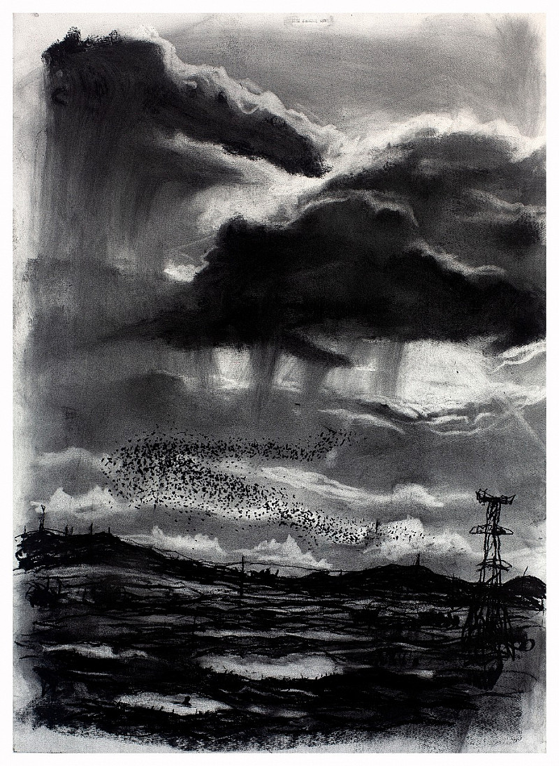 , Themba Khumalo , Charcoal, coffee wash and pastel on paper